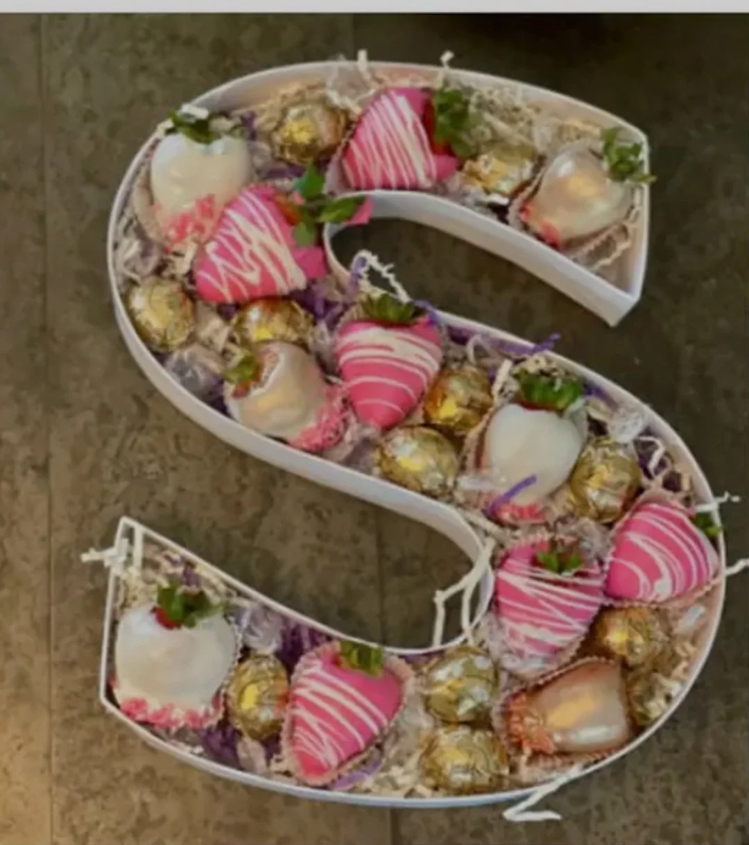 Single letter only! Any color theme with the choices of plain dipped strawberries, cheesecake strawberries and/or cupcakes